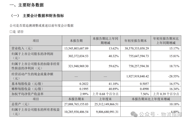 10月28日消息,申通快递公布三季度业绩。