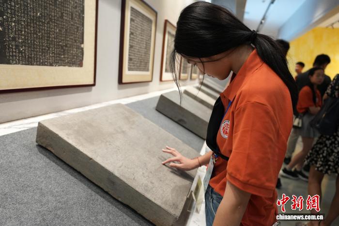 图为海外华裔青少年参观古代墓志像。连晨宇 摄