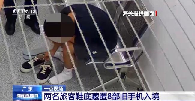 几天前,在同一口岸,一名澳门男子步伐僵硬引起怀疑。关员拦截检查后,从其鞋底查获4部旧手机。不久后,另一名步态异常的女子也被拦下,同样从她的鞋底发现了4部旧手机。