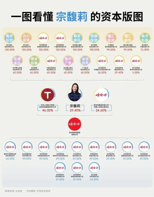 进一步看,继承宗庆后遗产后,宗馥莉的全部关联企业已经超200家,其中包括浙江真宗投资有限公司、浙江启力投资有限公司、杭州娃哈哈宏振投资有限公司、济南恒枫有限公司等等。