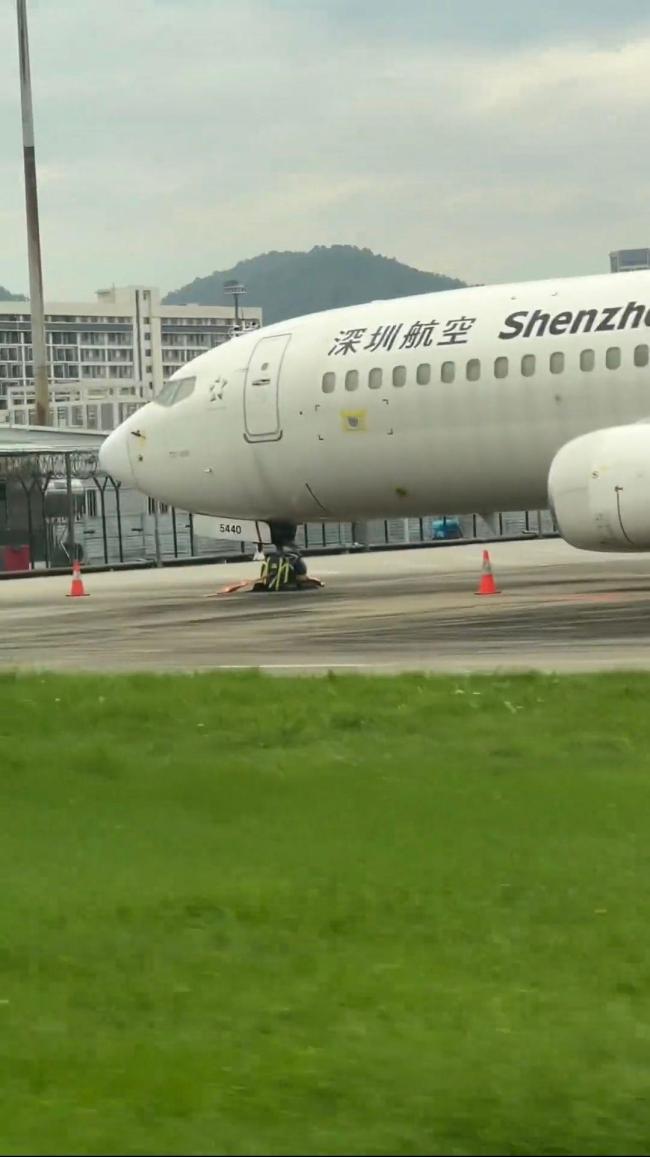 记者尝试私信联系该网友,暂未得到回复。该网友发布视频的定位信息显示为深圳宝安国际机场,视频中被胶带绑住的是深圳航空一架飞机。