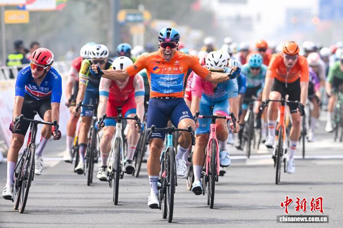 参赛车手冲向终点。2025第十三届环太湖国际公路自行车赛组委会供图