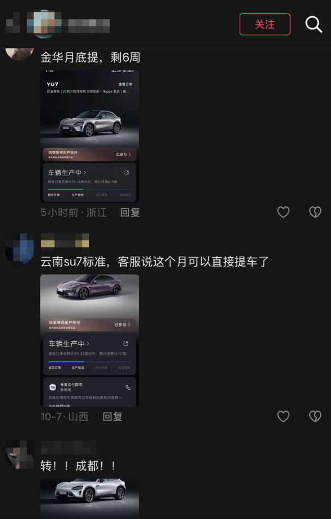 值得注意的是,今年6月YU7刚上市时创造了“3分钟大定20万台,18小时锁单24万台”的行业奇迹。当时,巨大的市场需求与漫长的交付周期形成了套利空间。