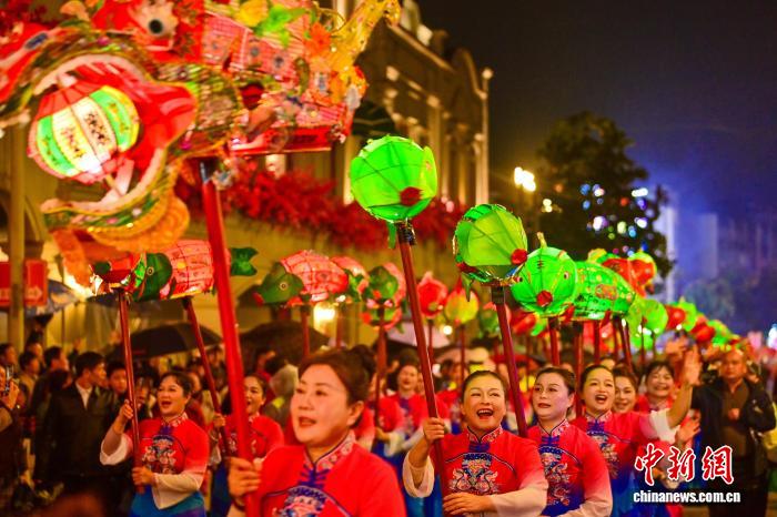 中新网赣州3月4日电 (刘力鑫 胡江涛)“恭迎南赣巡抚——王阳明先生入城!”农历正月十五,元宵之夜,一声穿越五百年的高呼,在“客家摇篮”江西赣州的建春门前响起,赣州市2026年元宵节客家民俗巡游活动精彩上演。
