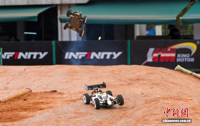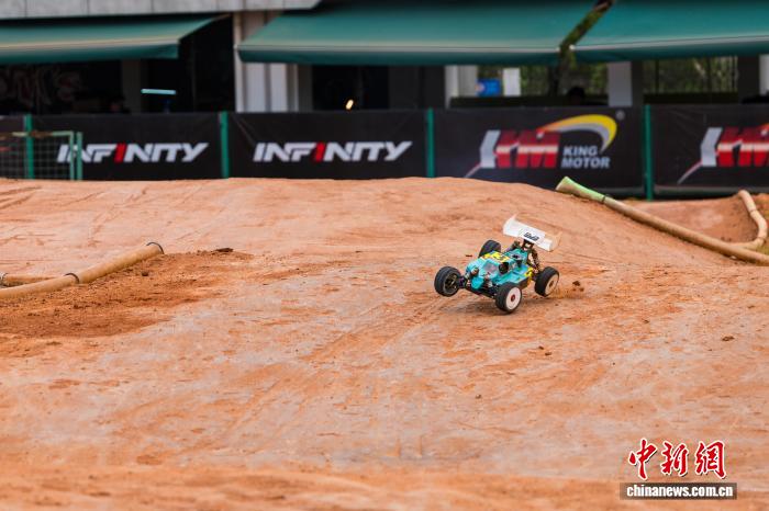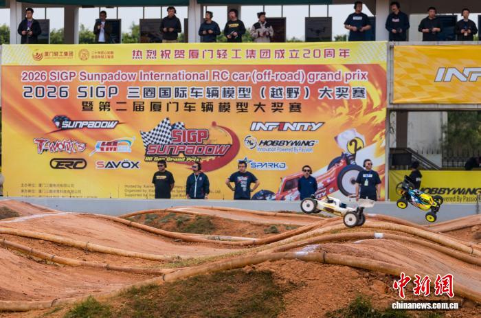 3月20日,2026SIGP三圈国际车辆模型(越野)大奖赛暨第二届厦门车辆模型大奖赛在福建厦门三圈ARC赛车场启幕。国内外行业嘉宾、专业车手与广大车迷聚首现场,共享激情赛事。图为赛车在比赛中。中新社记者 王东明 摄