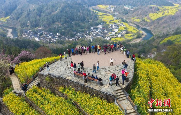 图为游客在观景台欣赏美景。(无人机照片)施亚磊 摄