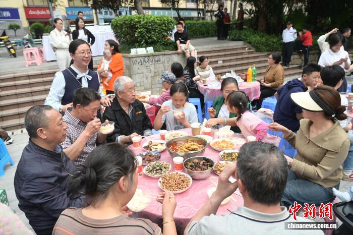 重庆一社区居民做“百家菜”组“百家宴”