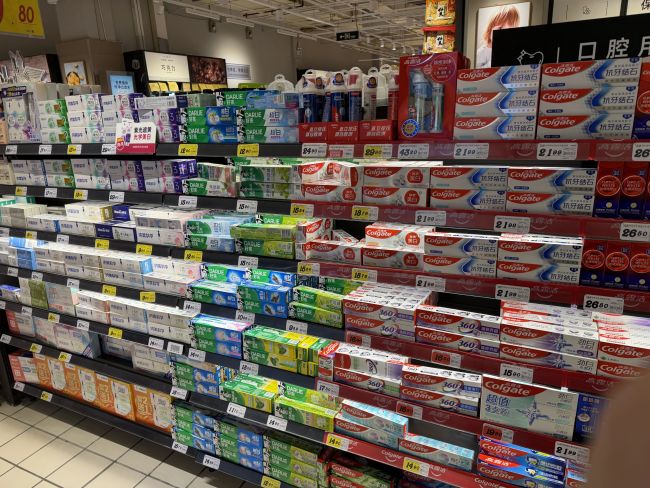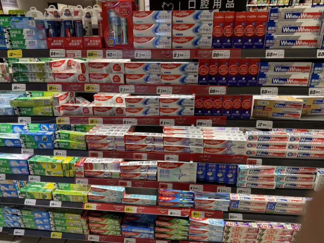 商超货架上的牙膏蓝鲸记者摄