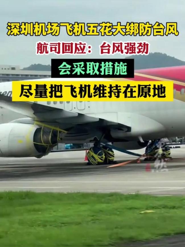 • 深圳机场飞机被“五花大绑”防台风,深圳机场采取特殊防护措施