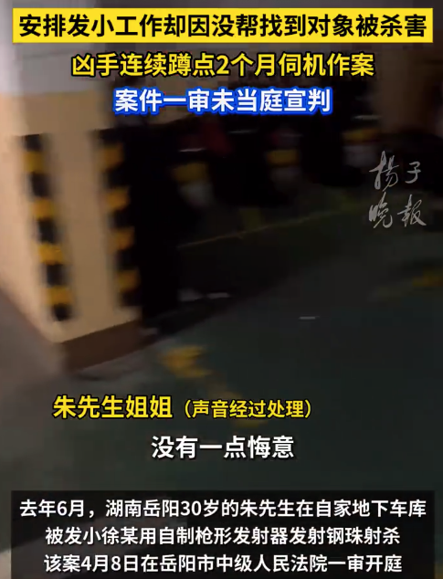 去年6月,湖南岳阳30岁的朱先生,在自家地下车库,被蹲守在此的发小徐某用枪形发射器击发钢珠射杀。该案于4月8日上午一审开庭,法院未当庭宣判。被害人家属朱女士告诉扬子晚报记者,徐某在庭审中不认为他的所作所为是犯罪,反而声称自己是受害者,毫无悔...