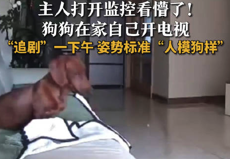 11月3日,山东烟台,黄女士通过监控看到狗狗竟然在家看电视。黄女士告诉记者,是狗狗不小心碰到遥控器误开了电视,然后就坐在沙发上看,像人一样坐着看了一下午,从4点钟到9点多钟,中间睡觉醒来后又接着看,感觉很搞笑。...