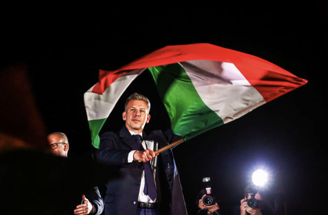 2026年4月12日,匈牙利国会选举之夜,多瑙河畔的国会大厦灯火通明。数万民众挥舞着红白绿三色旗,聚集在大厦前的广场上,高喊毛焦尔·彼得的名字